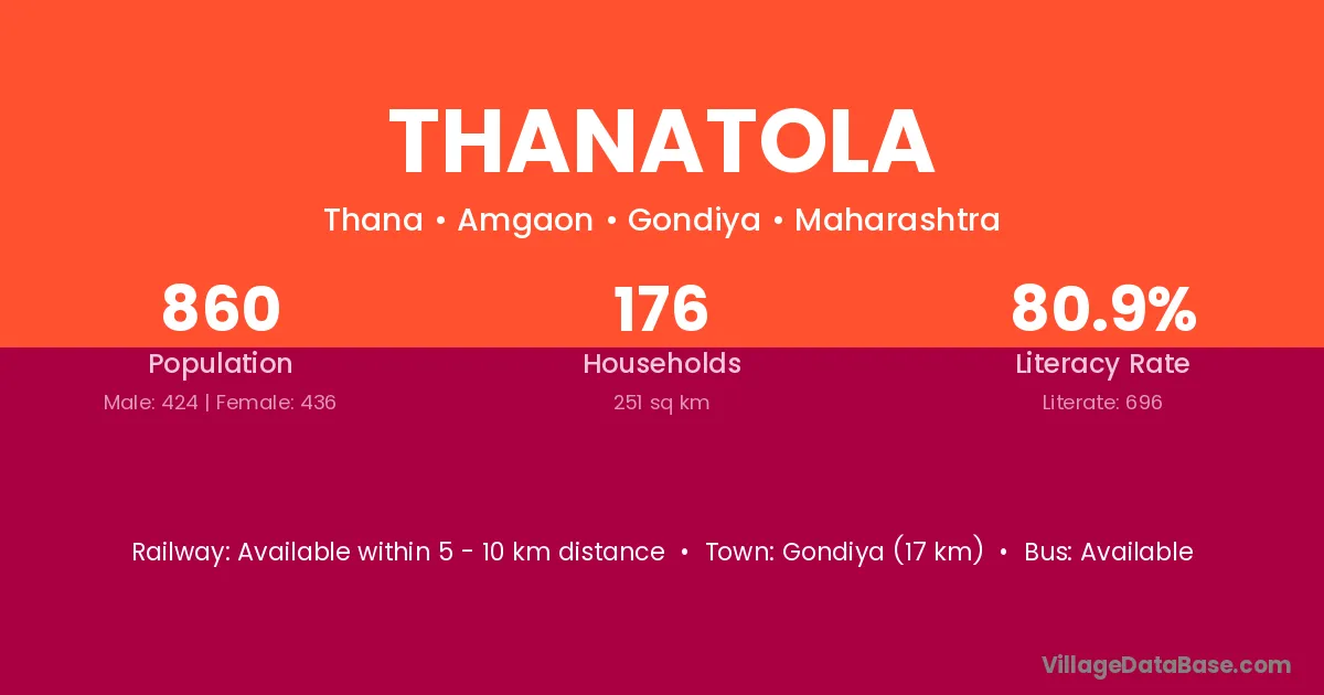 Gondiya (17 km) is the nearest town to Thanatola village for major economic activities and is located approximately 17 km away.