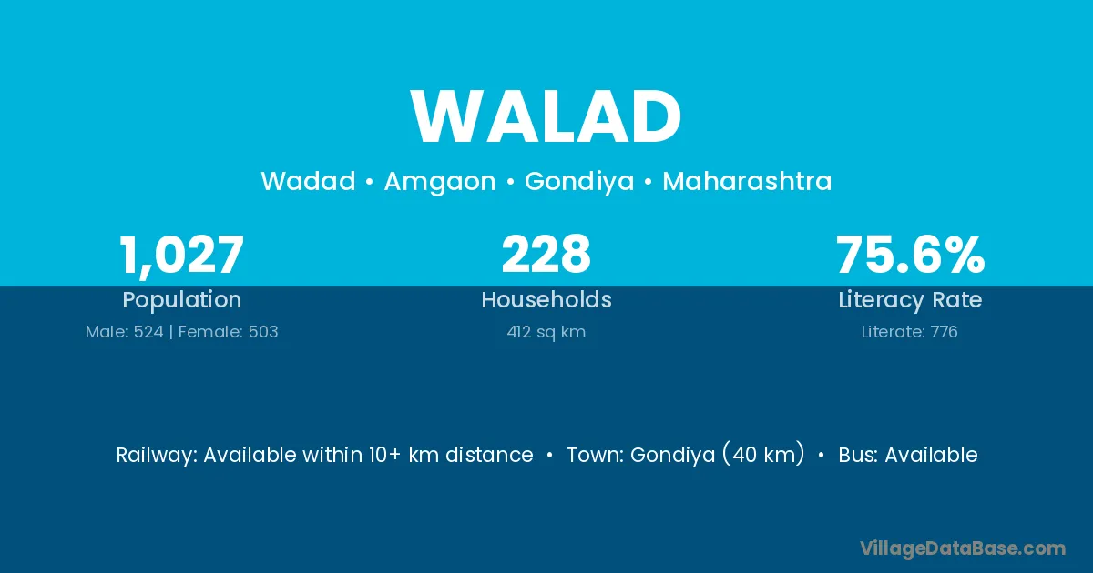 Gondiya (40 km) is the nearest town to Walad village for major economic activities and is located approximately 40 km away.