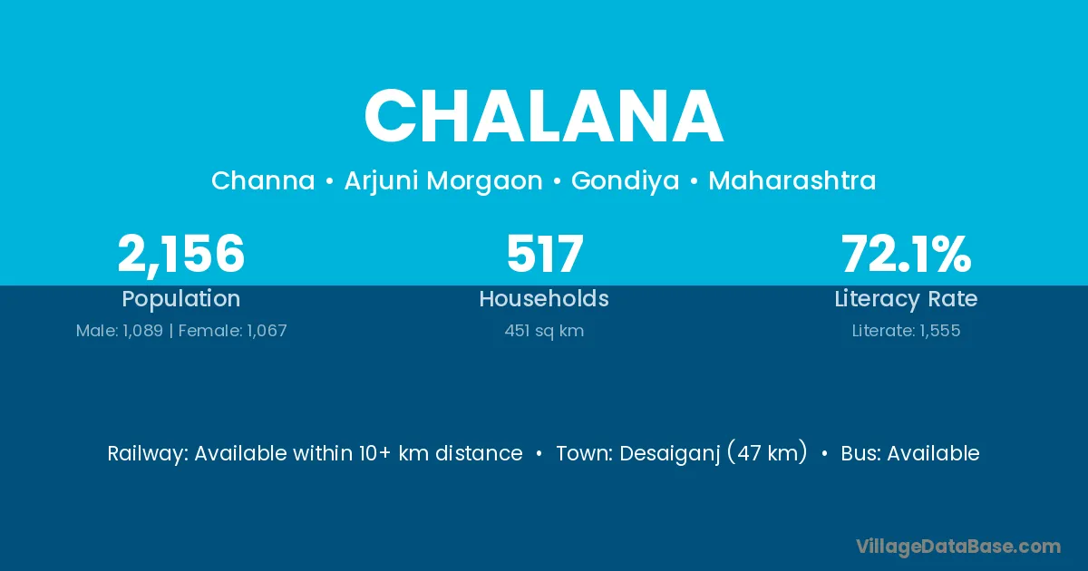 Desaiganj (47 km) is the nearest town to Chalana village for major economic activities and is located approximately 47 km away.