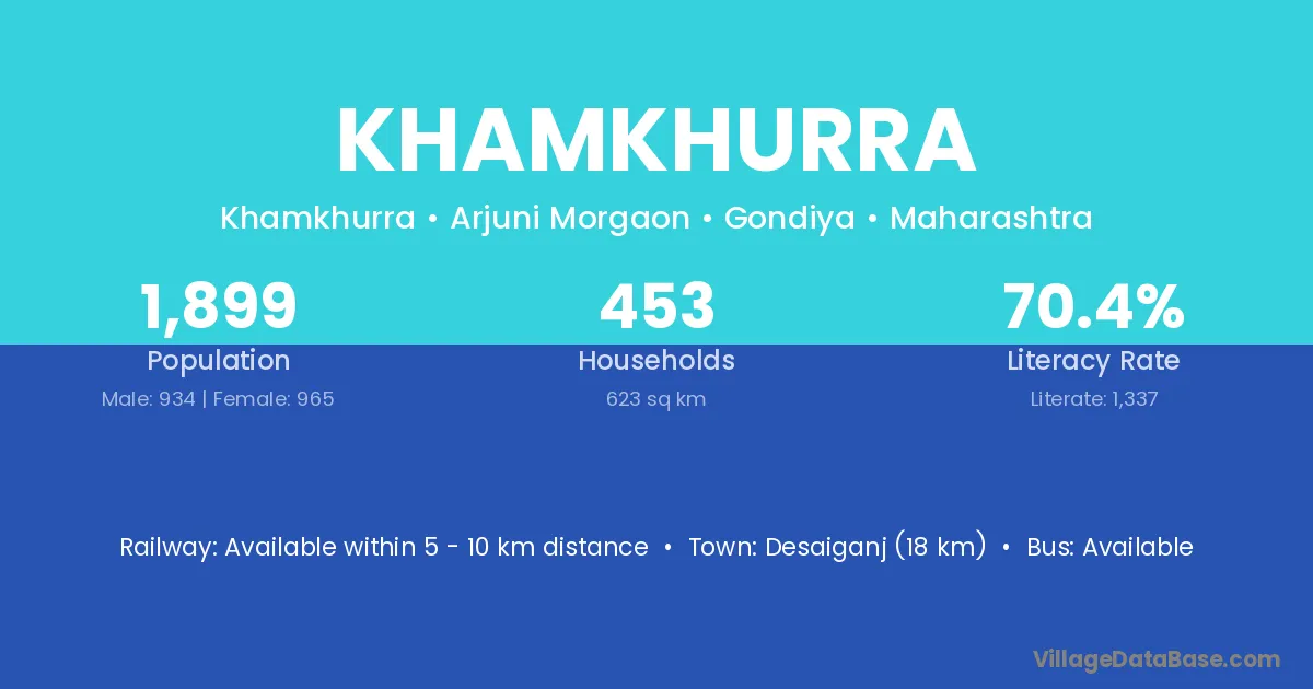 Desaiganj (18 km) is the nearest town to Khamkhurra village for major economic activities and is located approximately 18 km away.