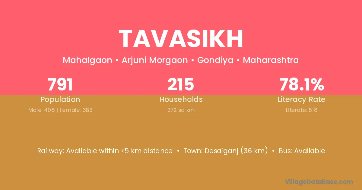 Desaiganj (36 km) is the nearest town to Tavasikh village for major economic activities and is located approximately 36 km away.