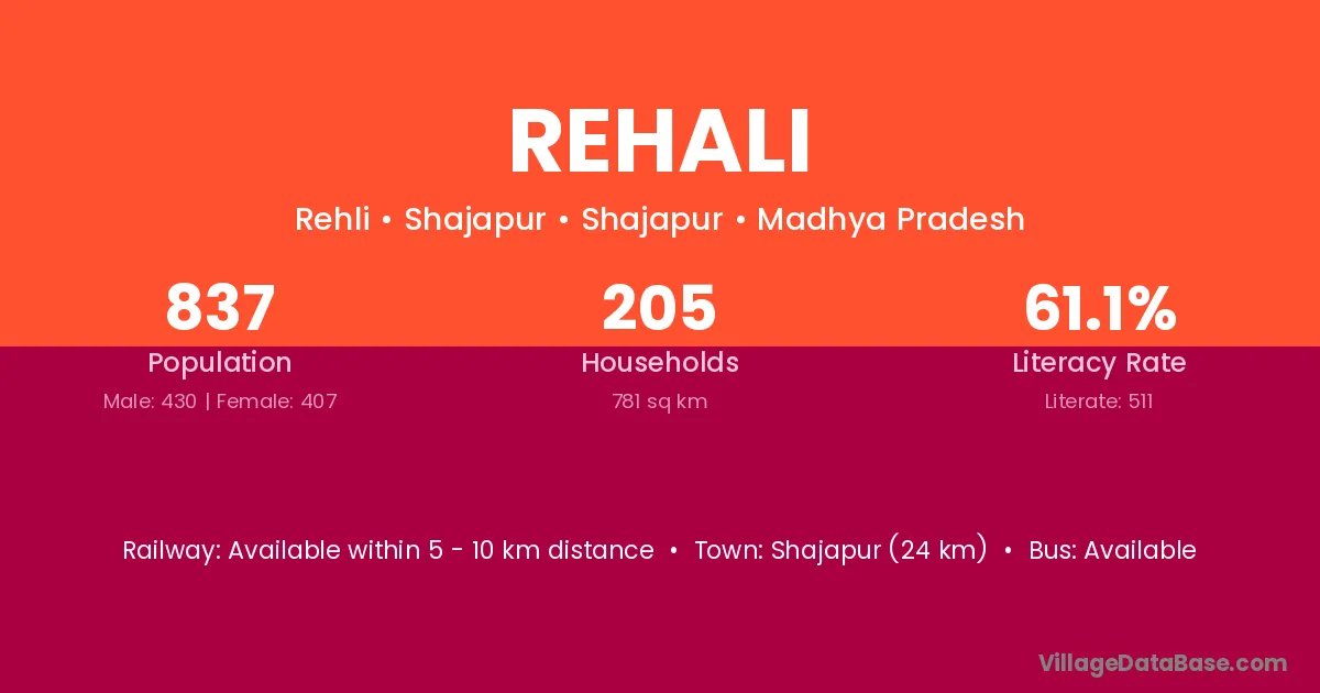Gondiya (85 km) is the nearest town to Rehali village for major economic activities and is located approximately 85 km away.