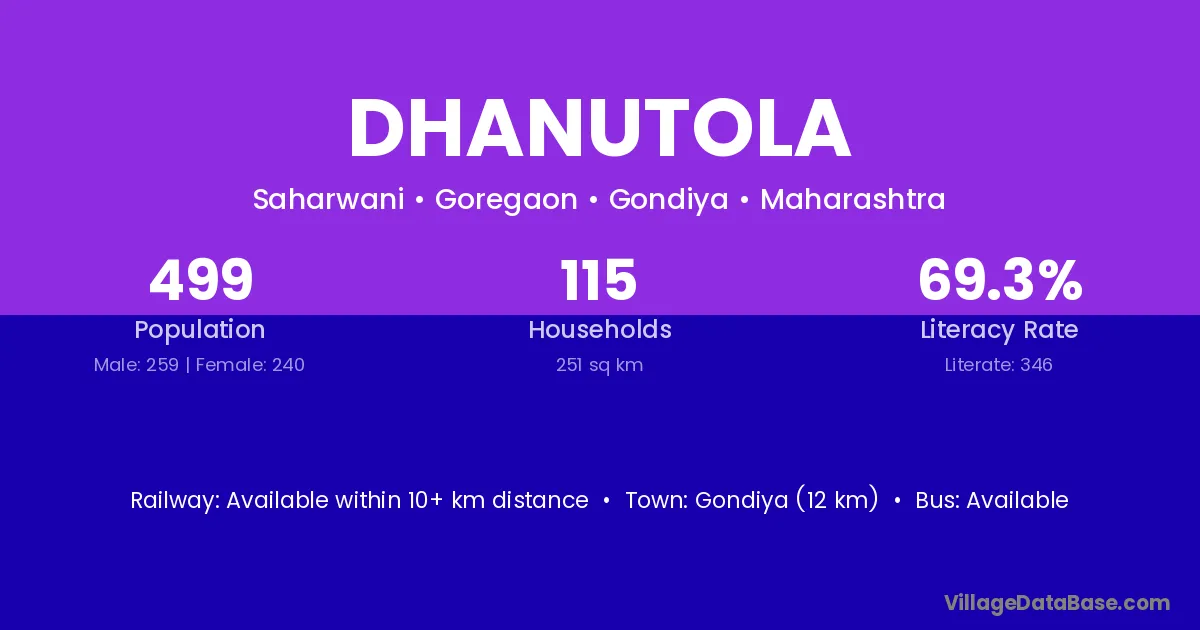 Dhanutola village has a total population of 499 people, of which 259 are males and 240 are females.