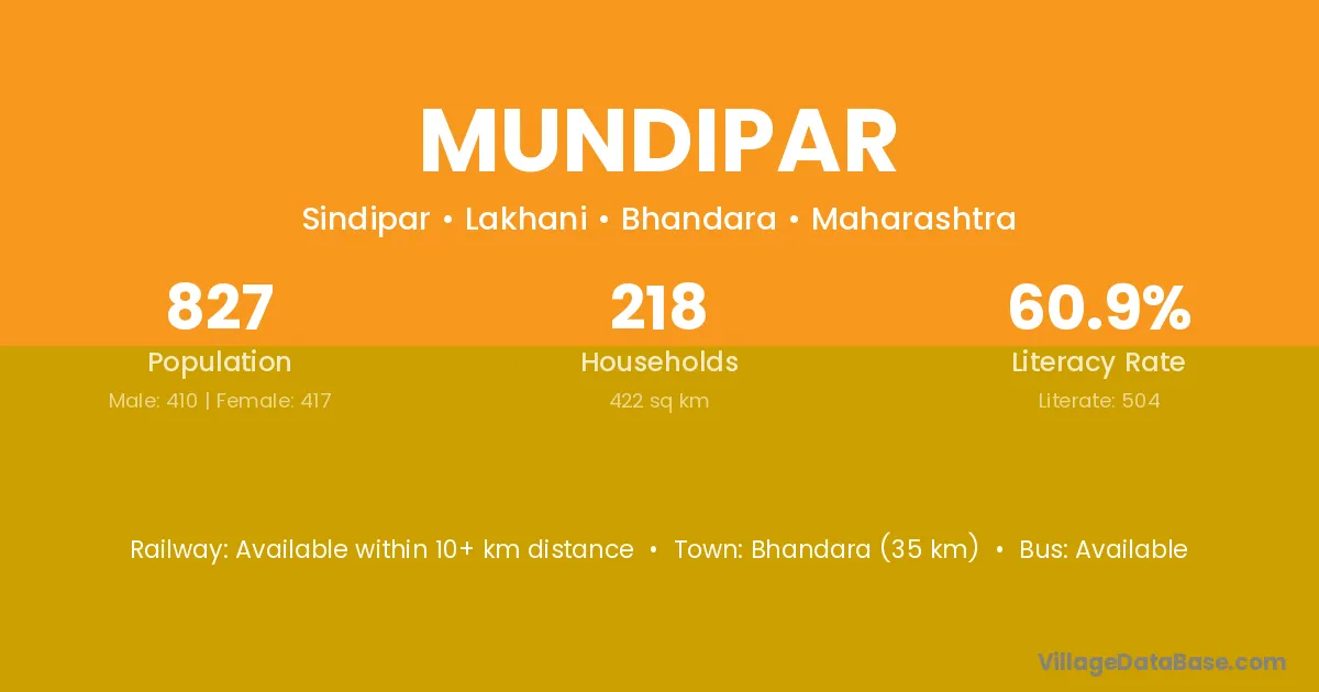 Gondiya (19 km) is the nearest town to Mundipar village for major economic activities and is located approximately 19 km away.