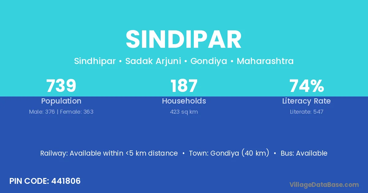 Gondiya (40 km) is the nearest town to Sindipar village for major economic activities and is located approximately 40 km away.