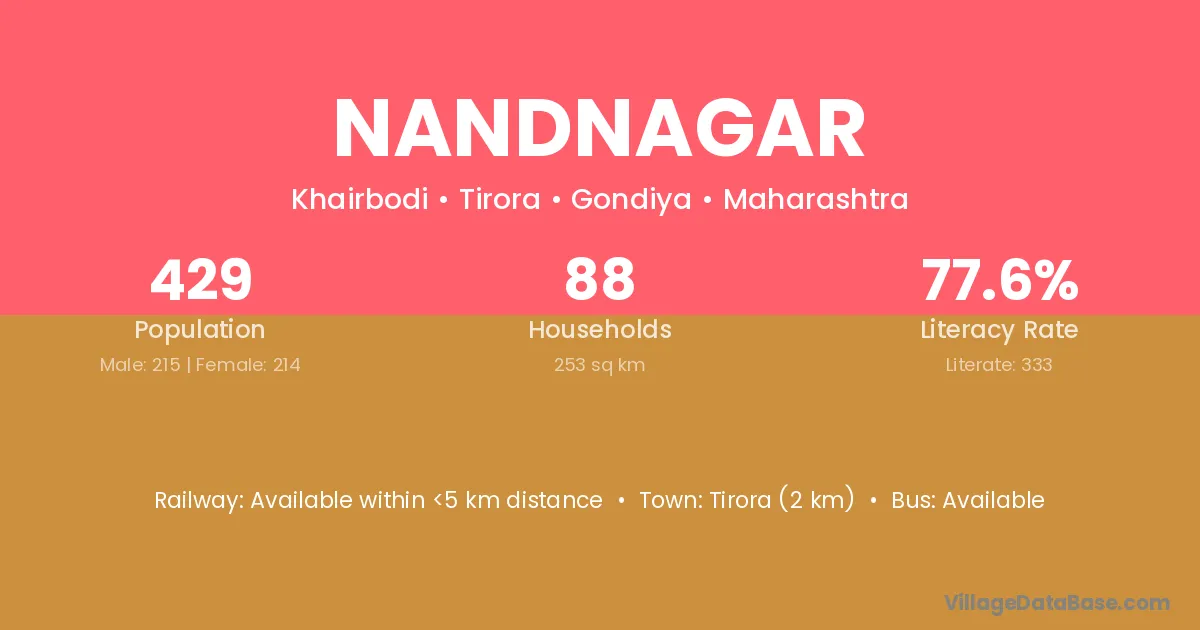 Nandnagar village has a total population of 429 people, of which 215 are males and 214 are females.