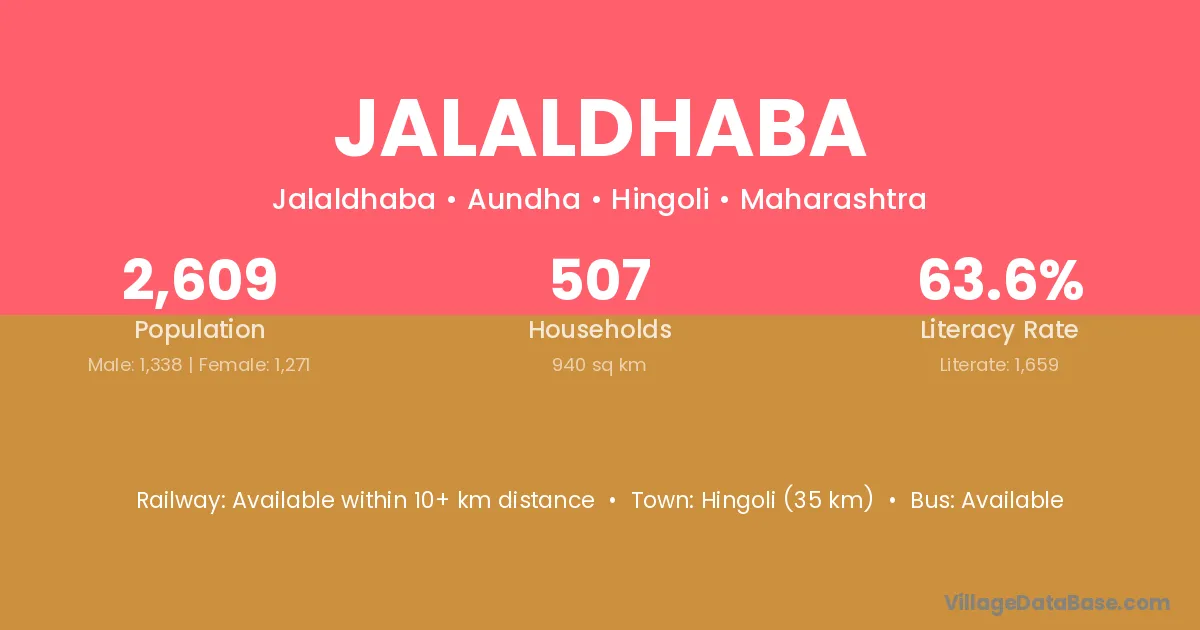 Hingoli (35 km) is the nearest town to Jalaldhaba village for major economic activities and is located approximately 35 km away.