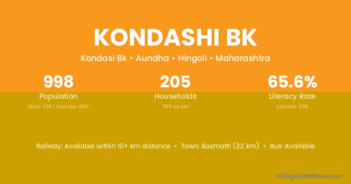 Kondashi Bk village is located in the Aundha Tehsil of the Hingoli district in Maharashtra .