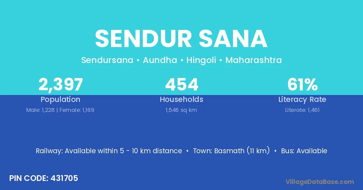 Basmath (11 km) is the nearest town to Sendur Sana village for major economic activities and is located approximately 11 km away.
