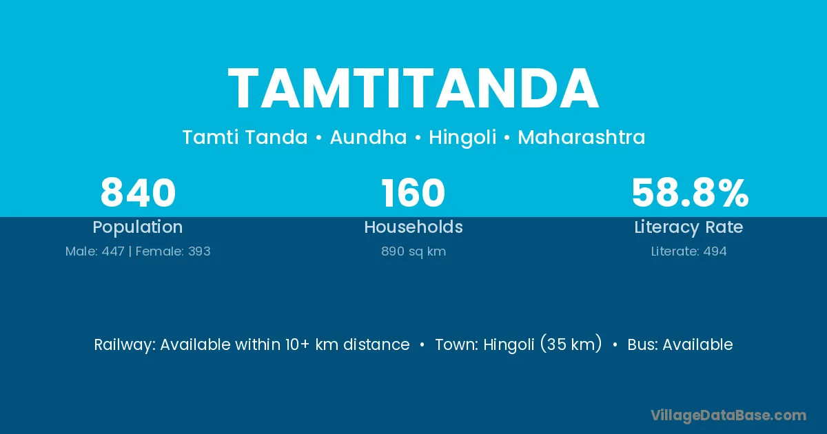 Hingoli (35 km) is the nearest town to Tamtitanda village for major economic activities and is located approximately 35 km away.