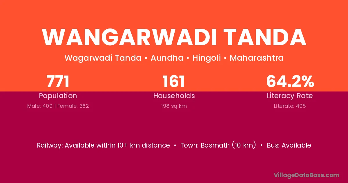 Basmath (10 km) is the nearest town to Wangarwadi Tanda village for major economic activities and is located approximately 10 km away.