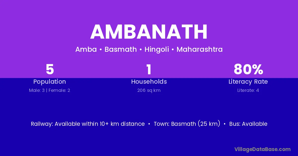 Basmath (25 km) is the nearest town to Ambanath village for major economic activities and is located approximately 25 km away.