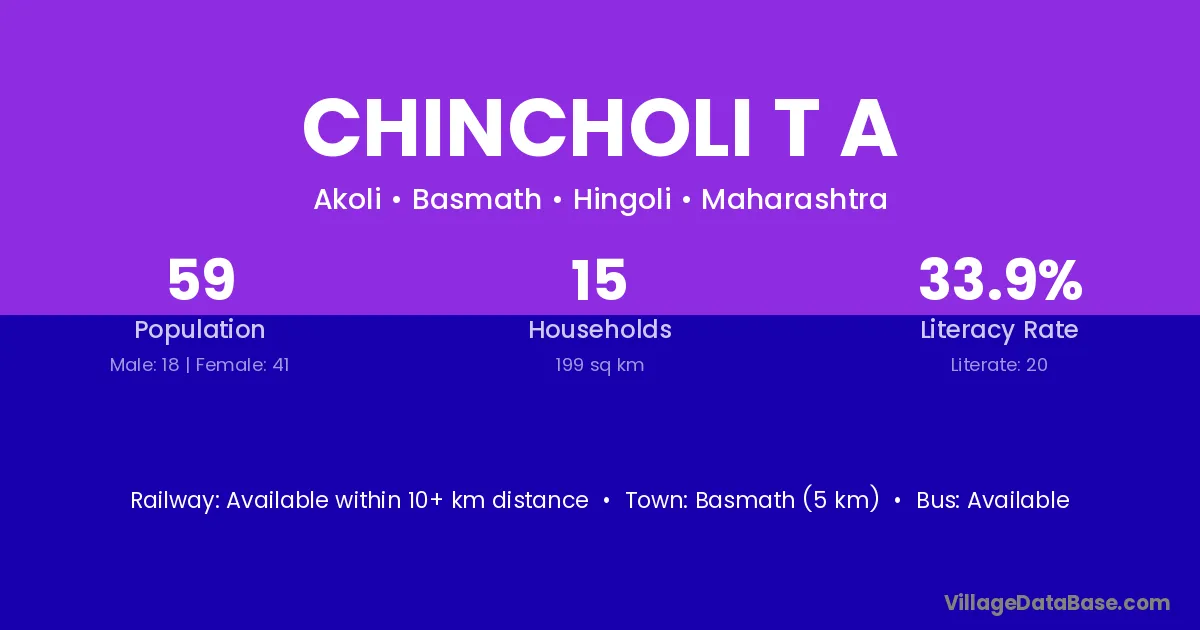 Chincholi T A village has a total population of 59 people, of which 18 are males and 41 are females.