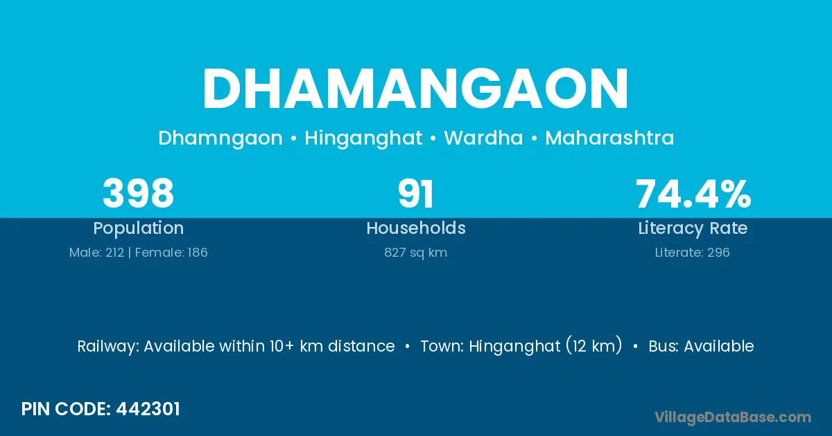 There are approximately 382 households in Dhamangaon village.