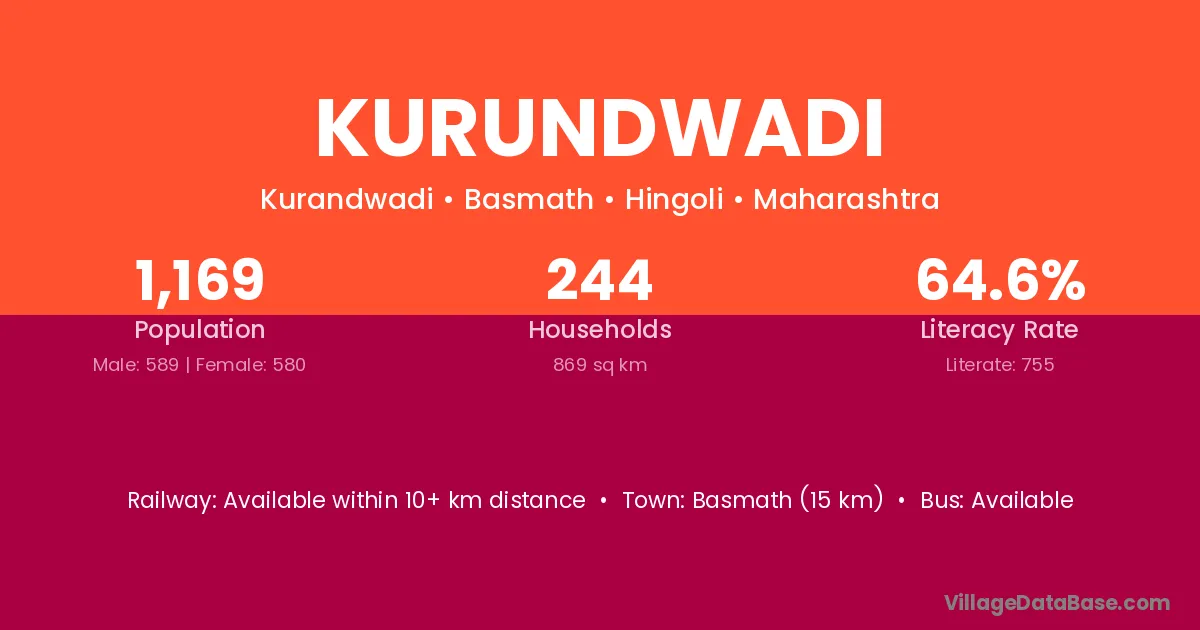 Basmath (15 km) is the nearest town to Kurundwadi village for major economic activities and is located approximately 15 km away.