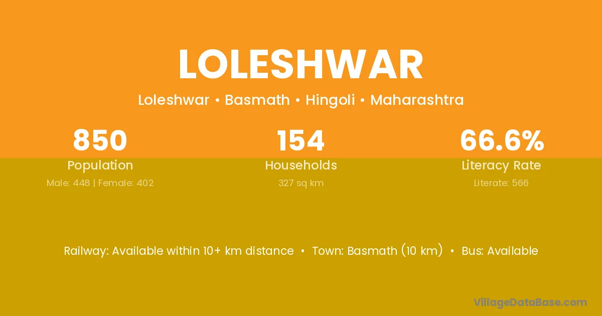 Basmath (10 km) is the nearest town to Loleshwar village for major economic activities and is located approximately 10 km away.