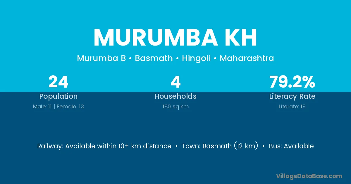 Murumba Kh village has a total population of 24 people, of which 11 are males and 13 are females.