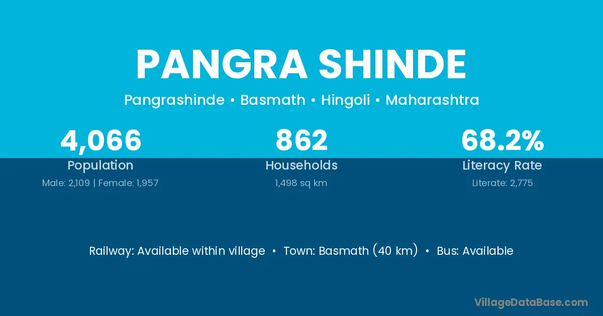 Basmath (40 km) is the nearest town to Pangra Shinde village for major economic activities and is located approximately 40 km away.