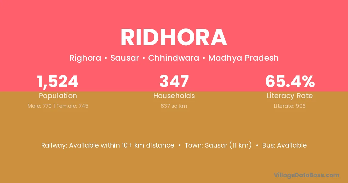 Basmath (20 km) is the nearest town to Ridhora village for major economic activities and is located approximately 20 km away.