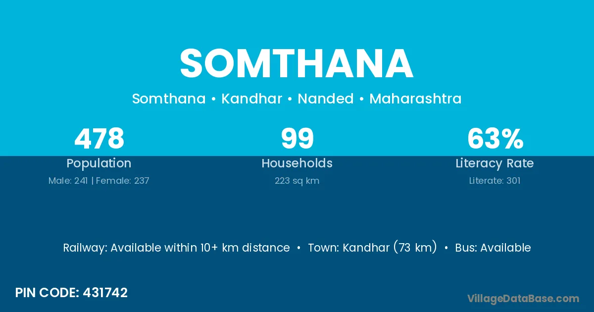 Basmath (10 km) is the nearest town to Somthana village for major economic activities and is located approximately 10 km away.