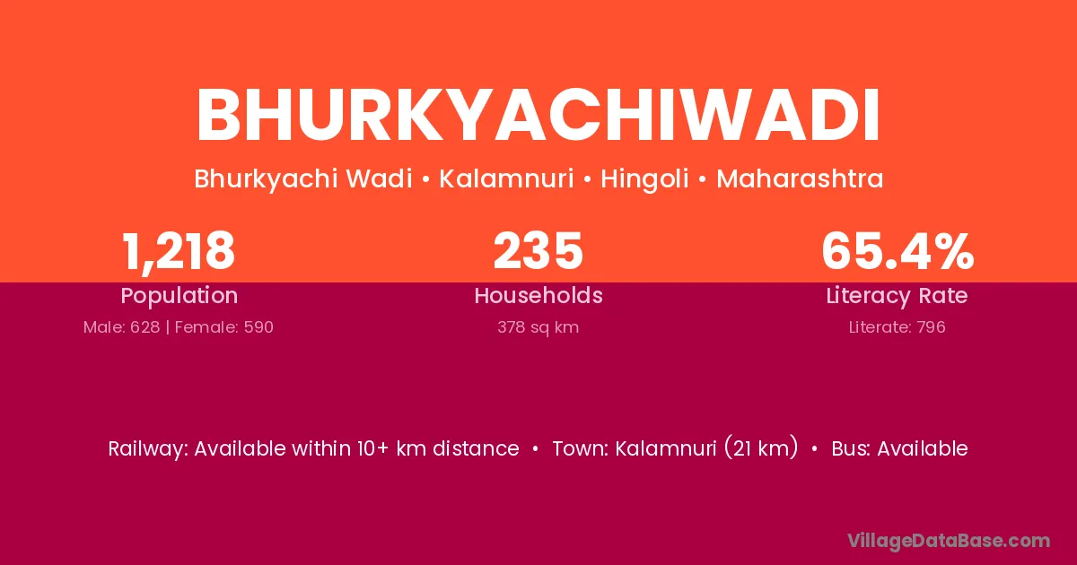 Kalamnuri (21 km) is the nearest town to Bhurkyachiwadi village for major economic activities and is located approximately 21 km away.