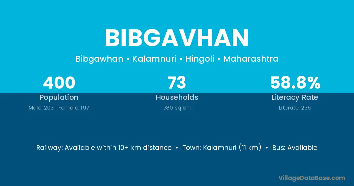 Kalamnuri (11 km) is the nearest town to Bibgavhan village for major economic activities and is located approximately 11 km away.