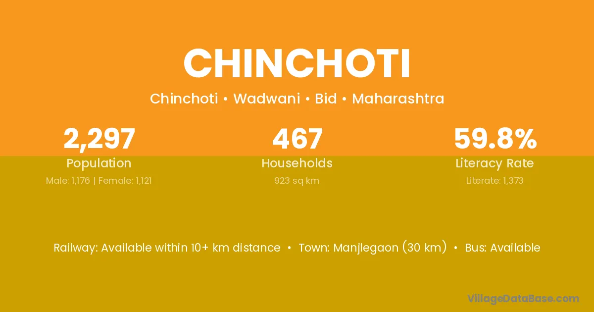 Kalamnuri (25 km) is the nearest town to Chinchoti village for major economic activities and is located approximately 25 km away.