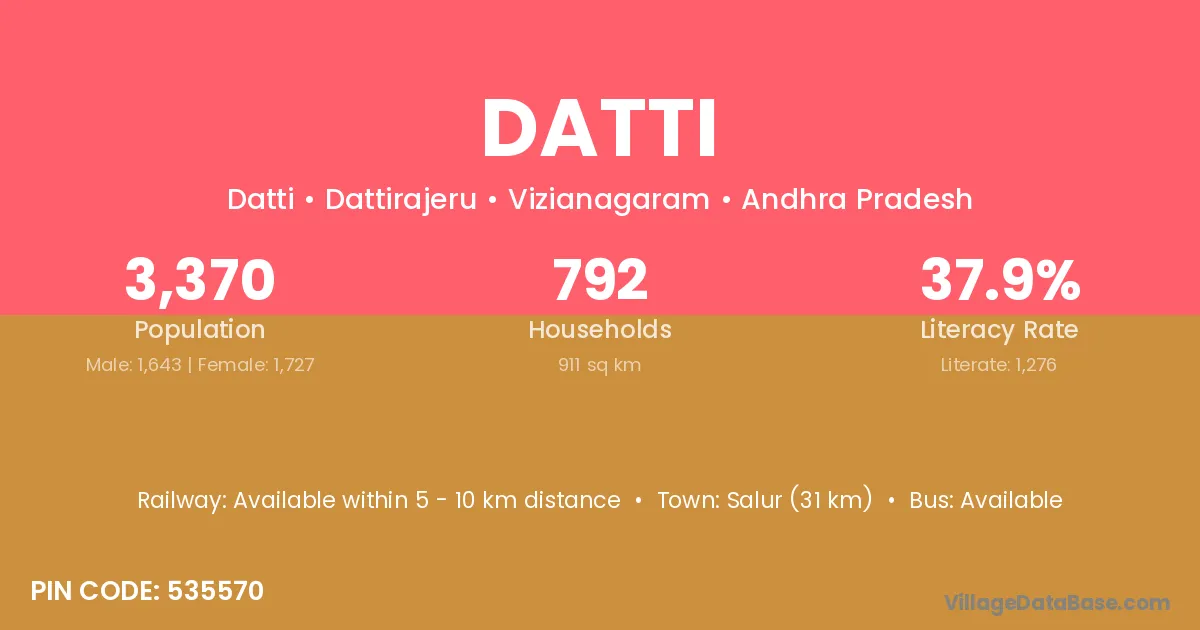 The literacy rate of Datti village is 59.12%. Male literacy stands at 64.00% and female literacy at 53.94%.