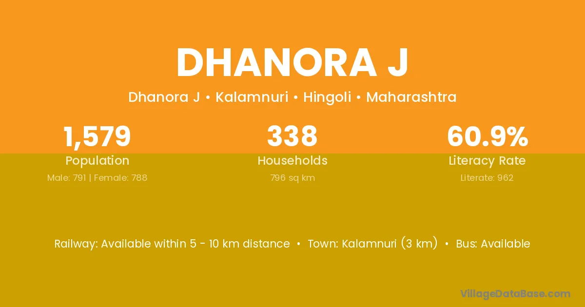 Kalamnuri (3 km) is the nearest town to Dhanora J village for major economic activities and is located approximately 3 km away.