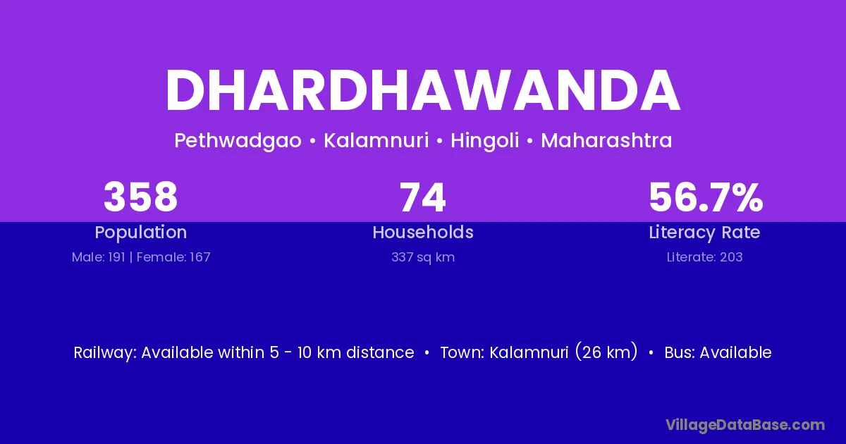 Kalamnuri (26 km) is the nearest town to Dhardhawanda village for major economic activities and is located approximately 26 km away.