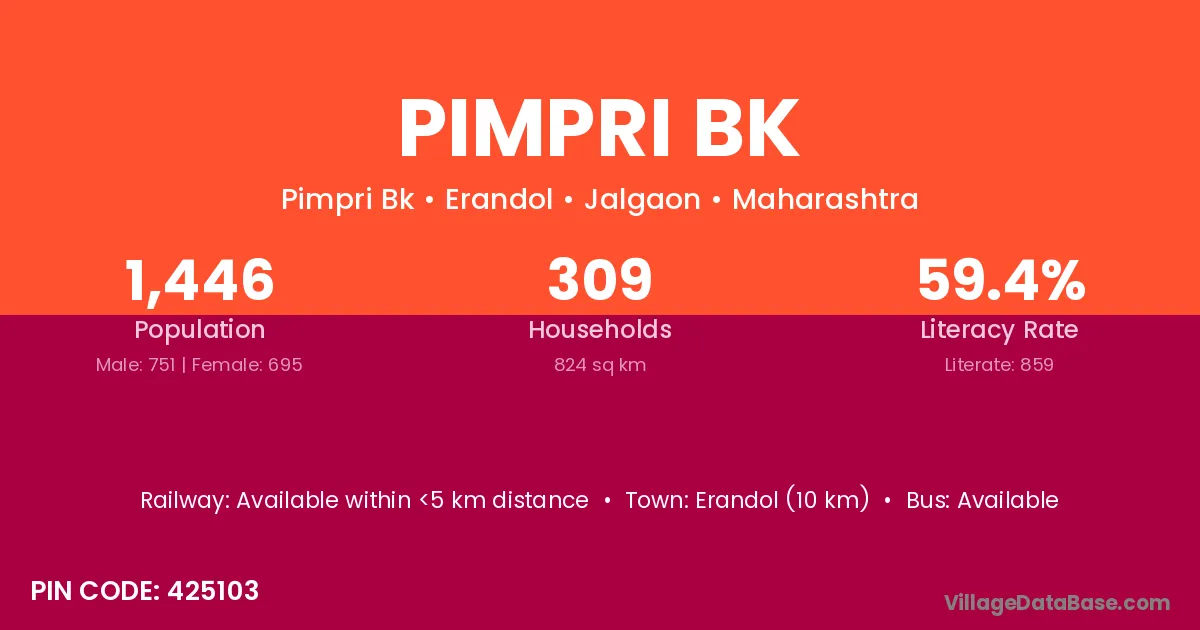 Pimpri Bk village has a total population of 1,012 people, of which 498 are males and 514 are females.