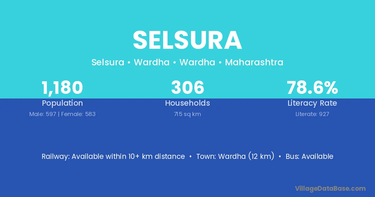 Kalamnuri (10 km) is the nearest town to Selsura village for major economic activities and is located approximately 10 km away.