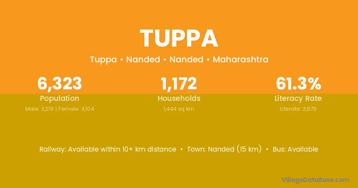 Kalamnuri (14 km) is the nearest town to Tuppa village for major economic activities and is located approximately 14 km away.