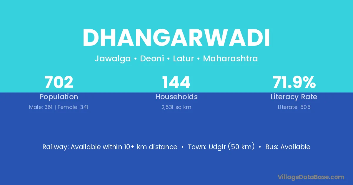 Hingoli (35 km) is the nearest town to Dhangarwadi village for major economic activities and is located approximately 35 km away.