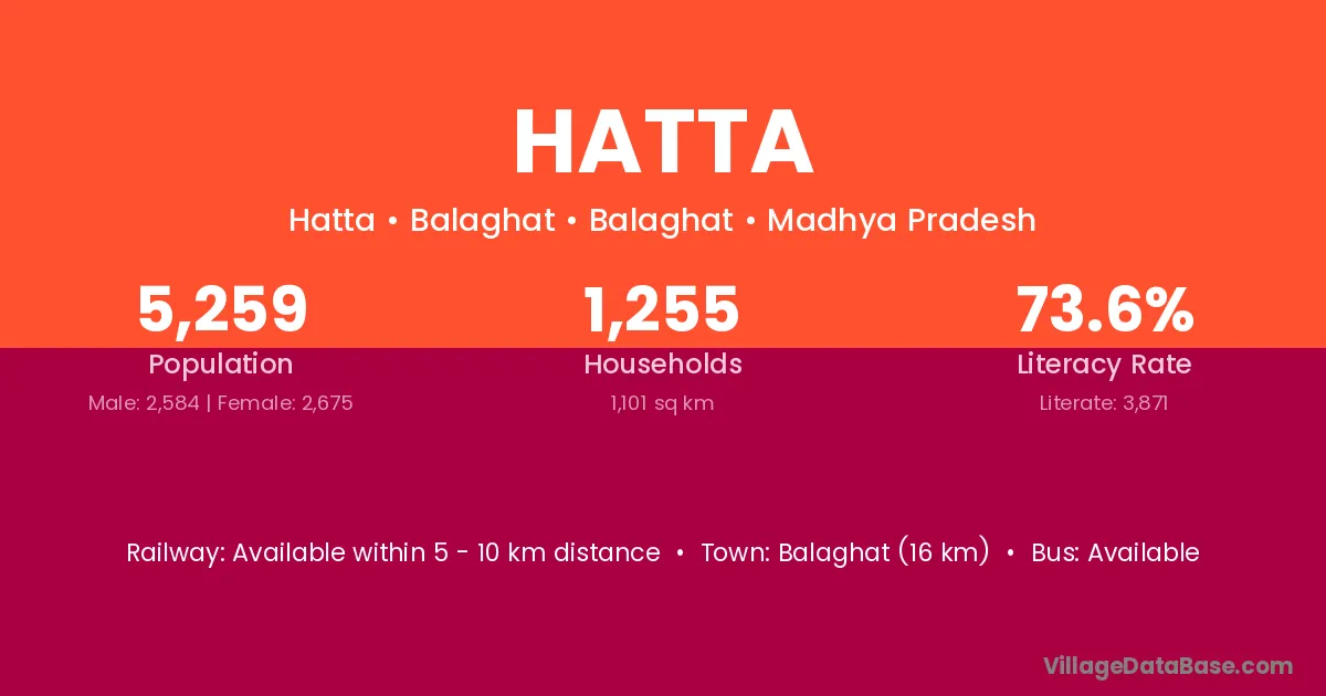 The literacy rate of Hatta village is 64.84%. Male literacy stands at 74.42% and female literacy at 54.57%.