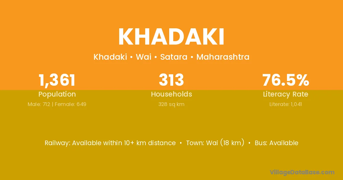 Hingoli (24 km) is the nearest town to Khadaki village for major economic activities and is located approximately 24 km away.