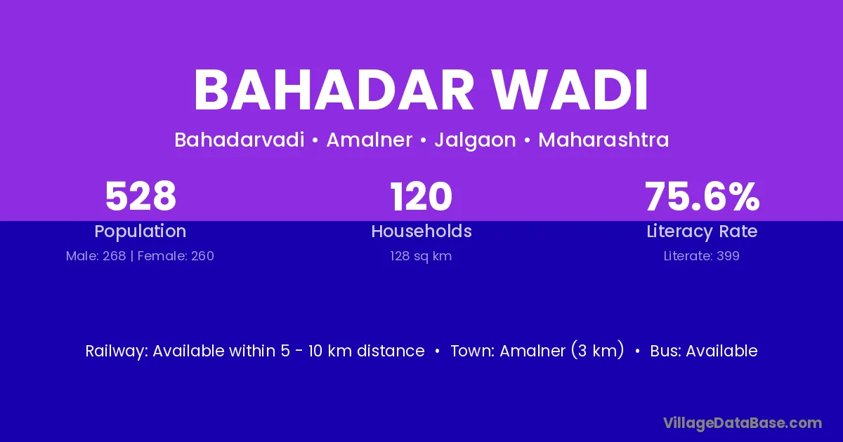 Amalner (3 km) is the nearest town to Bahadar Wadi village for major economic activities and is located approximately 3 km away.