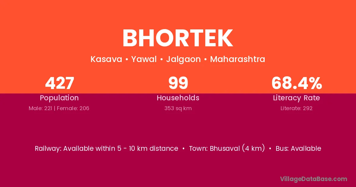 Amalner (14 km) is the nearest town to Bhortek village for major economic activities and is located approximately 14 km away.