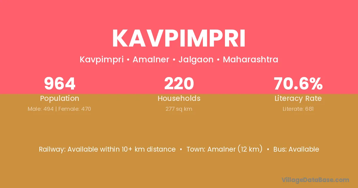 Kavpimpri village has a total population of 964 people, of which 494 are males and 470 are females.