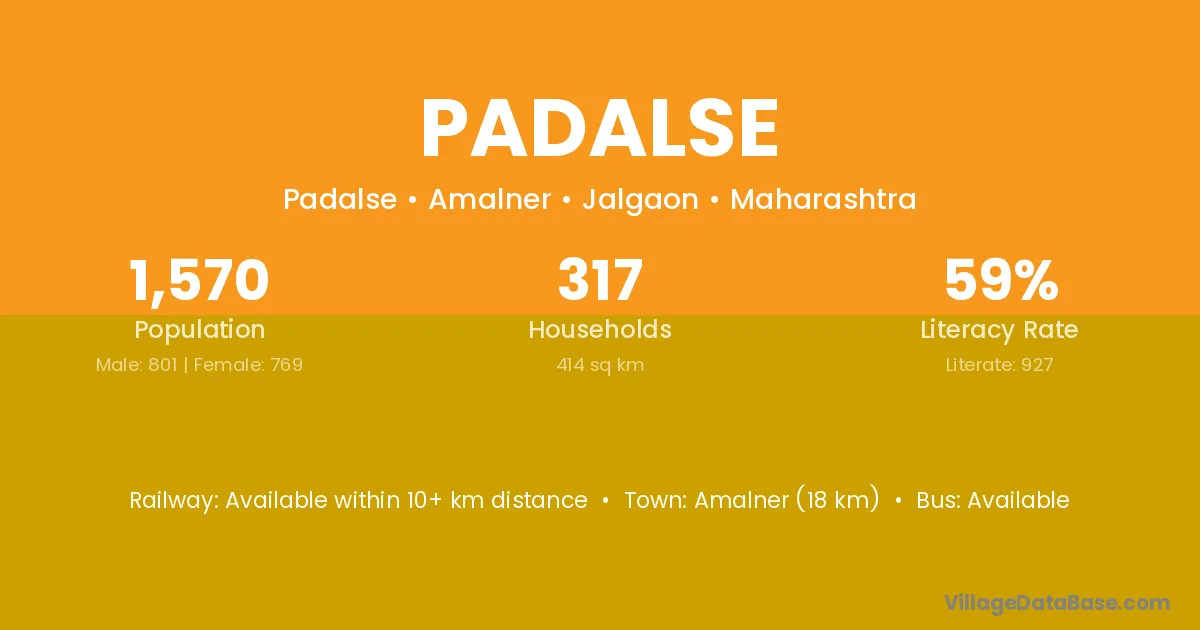 Amalner (18 km) is the nearest town to Padalse village for major economic activities and is located approximately 18 km away.