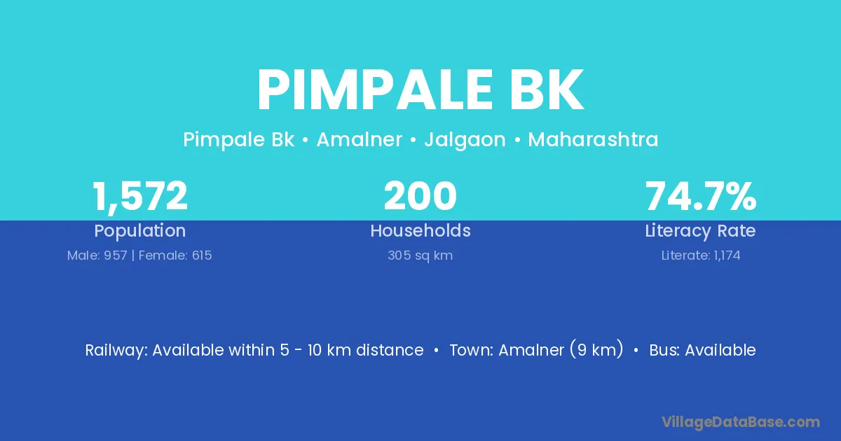 Amalner (9 km) is the nearest town to Pimpale Bk village for major economic activities and is located approximately 9 km away.
