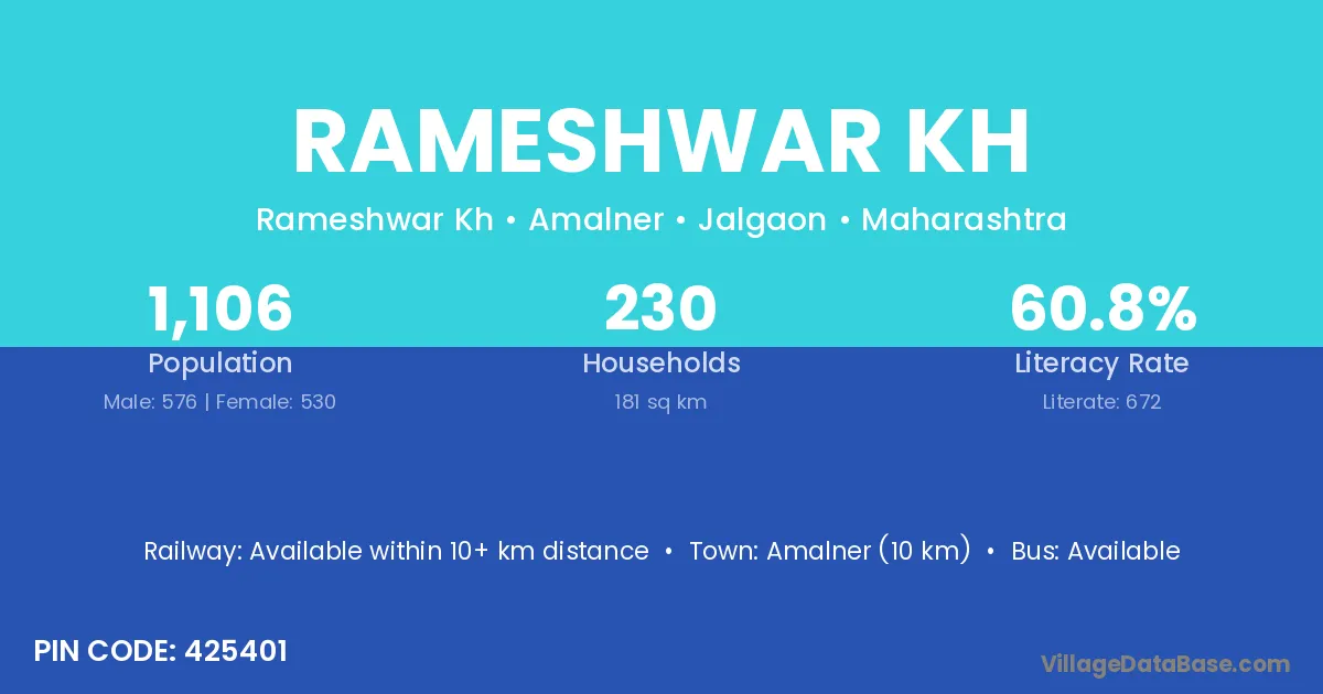 Amalner (10 km) is the nearest town to Rameshwar Kh village for major economic activities and is located approximately 10 km away.