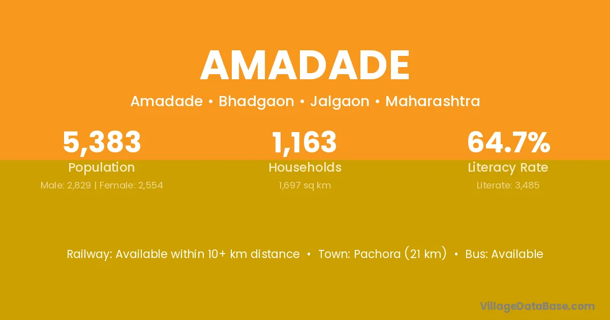 Pachora (21 km) is the nearest town to Amadade village for major economic activities and is located approximately 21 km away.
