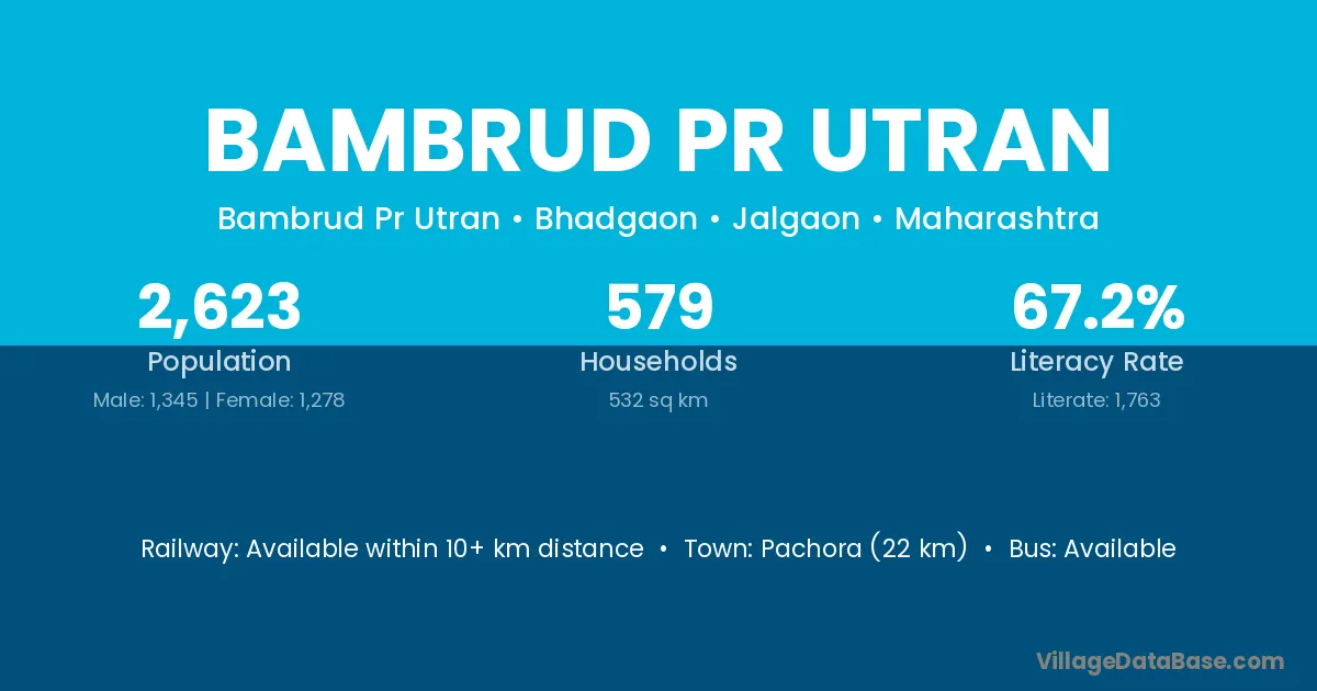 Pachora (22 km) is the nearest town to Bambrud Pr Utran village for major economic activities and is located approximately 22 km away.