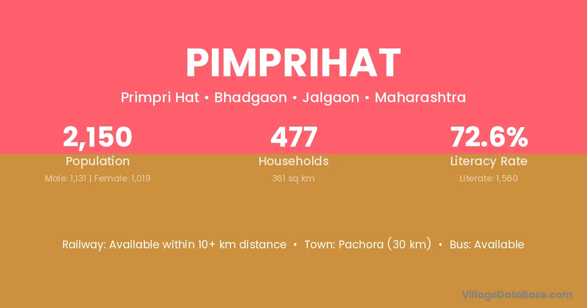 Pachora (30 km) is the nearest town to Pimprihat village for major economic activities and is located approximately 30 km away.