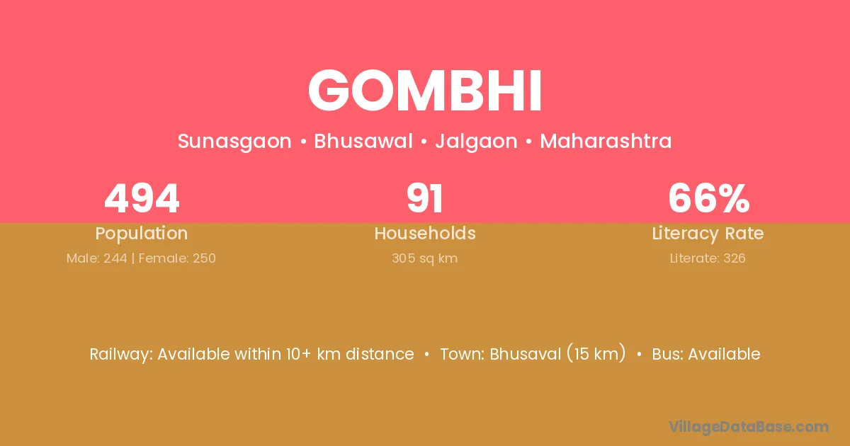 Bhusaval (15 km) is the nearest town to Gombhi village for major economic activities and is located approximately 15 km away.