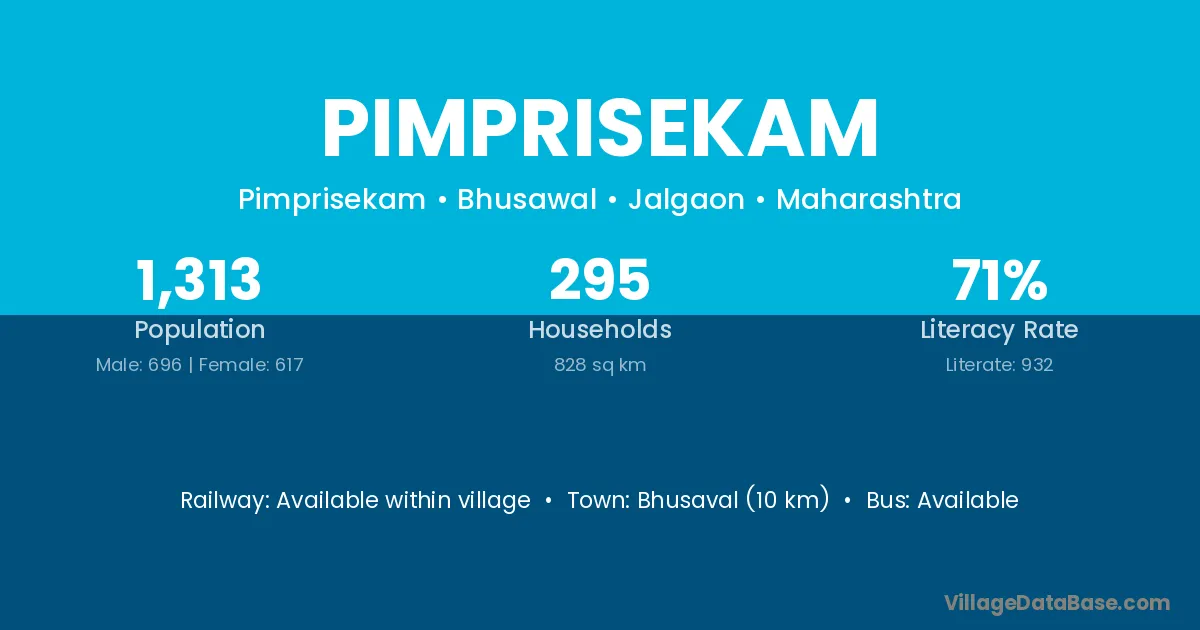 Bhusaval (10 km) is the nearest town to Pimprisekam village for major economic activities and is located approximately 10 km away.