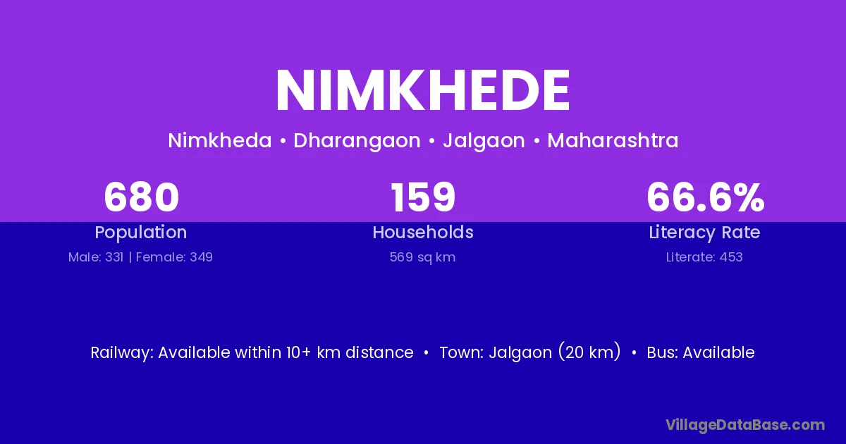 Malkapur (13 km) is the nearest town to Nimkhede village for major economic activities and is located approximately 13 km away.