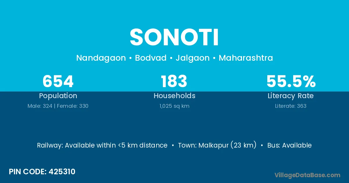 Malkapur (23 km) is the nearest town to Sonoti village for major economic activities and is located approximately 23 km away.