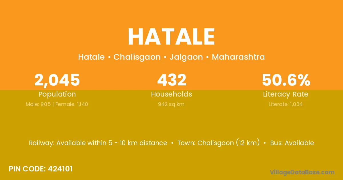 Chalisgaon (12 km) is the nearest town to Hatale village for major economic activities and is located approximately 12 km away.
